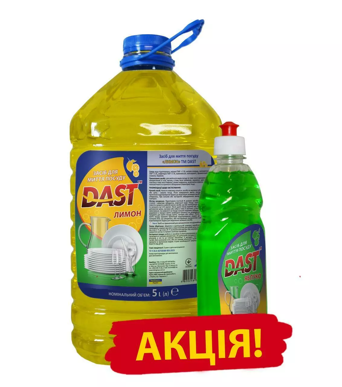 Акційний набір для миття посуду Dast 5 л + 0,5 л