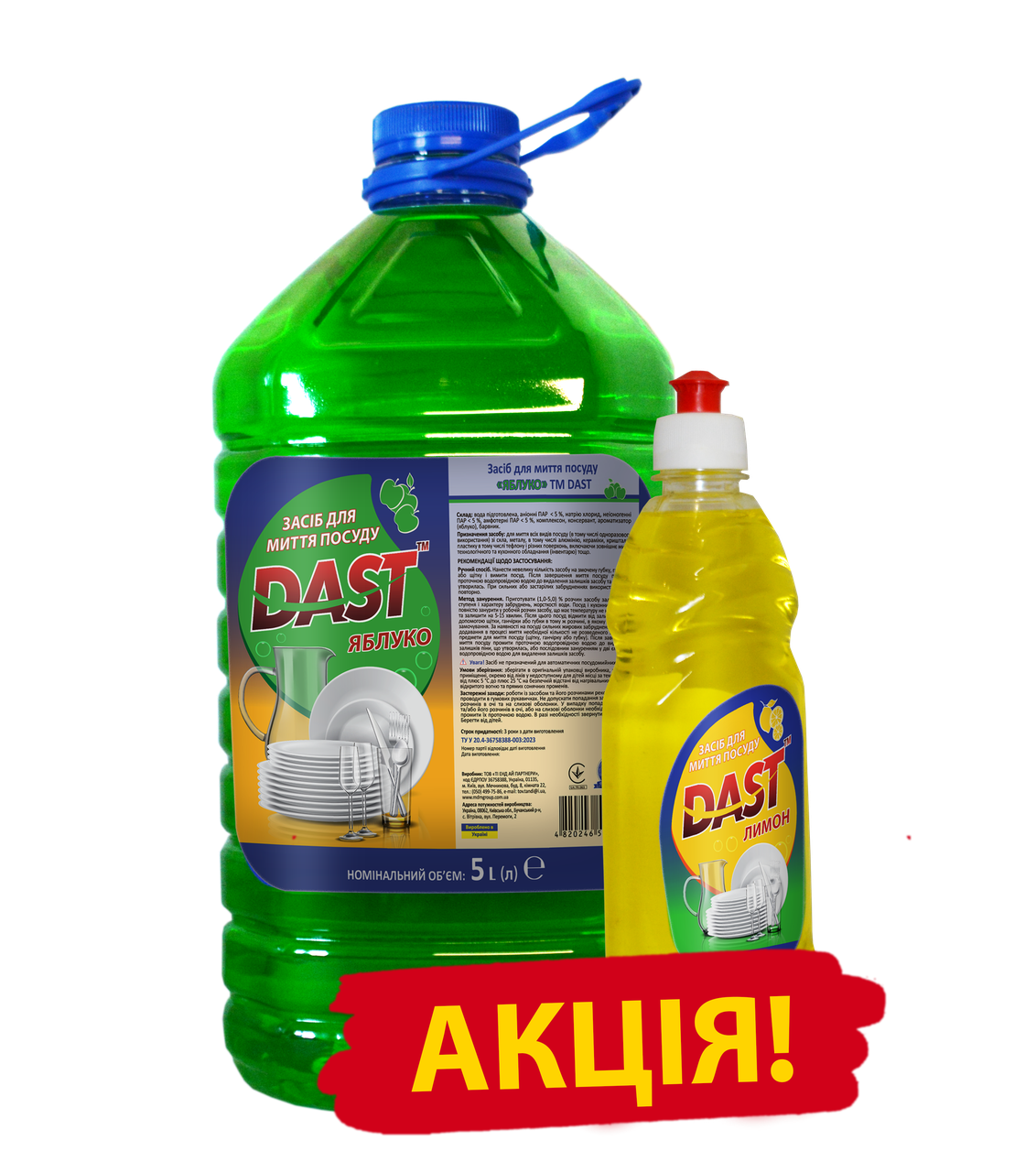 Акційний набір для миття посуду Dast 5 л + 0,5 л