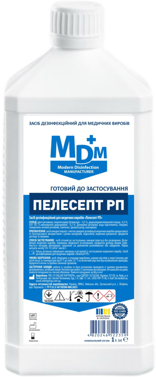 Засіб дезінфекційний для медичних виробів Пелесепт РП - готовий до застосування дезінфекційний засіб у вигляді прозорої безбарвної або забарвленої рідини із запахом використаної сировини або ароматизатора. Має виражені антимікробні, миючі та очищаючі властивості. Добре змочує поверхні, ефективно видаляє забруднення різного походження. Не потребує розведення, зручний у застосуванні, сумісний із широким спектром матеріалів. Призначений для швидкої дезінфекції медичних виробів та медичного обладнання, у тому числі багаторазового використання, включаючи ендоскопи, стоматологічні та хірургічні інструменти, датчики, кувези, медичні рукавички, предмети догляду за хворими тощо.