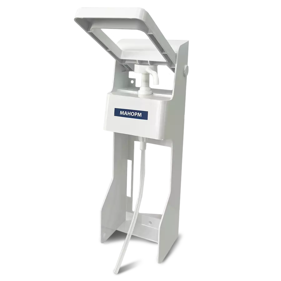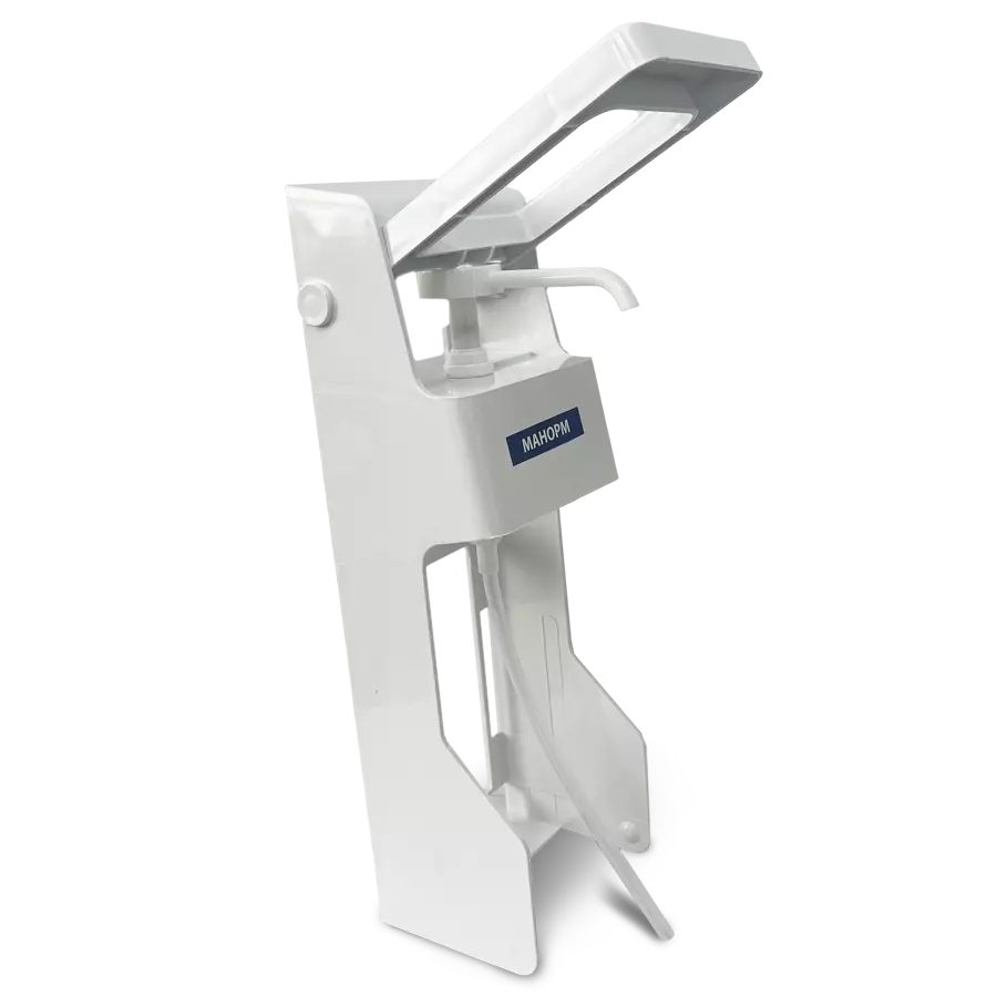 Зручний і надійний ліктьовий дозатор призначений для гігієнічного дозування антисептичних та мийних засобів у пляшках об'ємом 1 л. Завдяки простій конструкції та зручному важелю, дозатор забезпечує безконтактне використання — натиск здійснюється ліктем, що знижує ризик перехресного зараження.