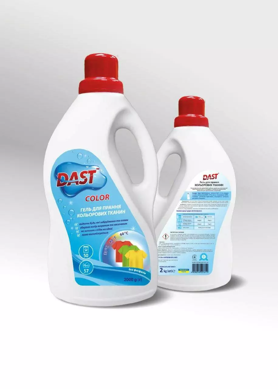 Гель для прання кольорових тканин від DAST – це ідеальне поєднання потужного очищення, захисту кольору та турботи про техніку.