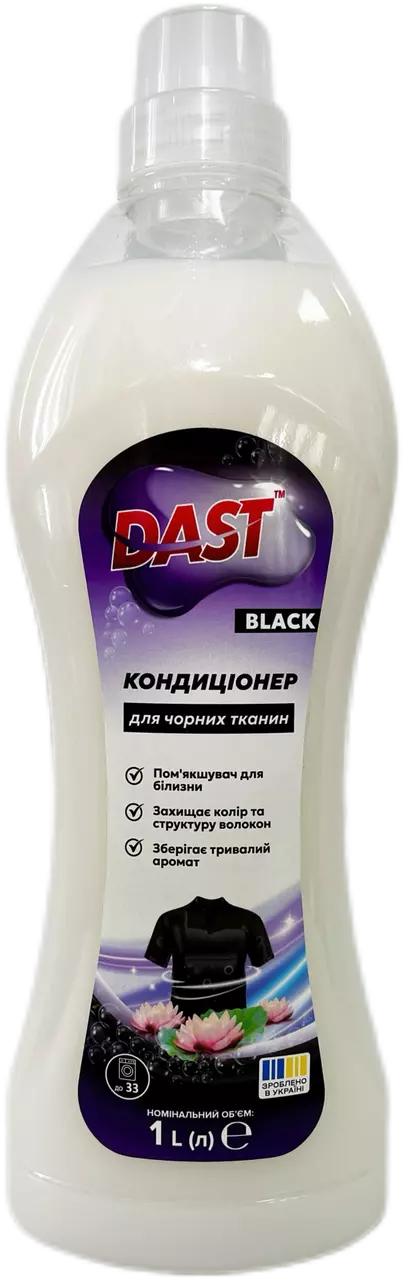 Кондиціонер для чорних тканин DAST призначений для ополіскування чорних та темних речей після автоматичного чи ручного прання. Надає тканинам легкого свіжого аромату, полегшує процес прасування, сприяє пом’якшенню тканин та надає антистатичний ефект. Засіб виготовлений з ретельно обраних безпечних інгредієнтів.