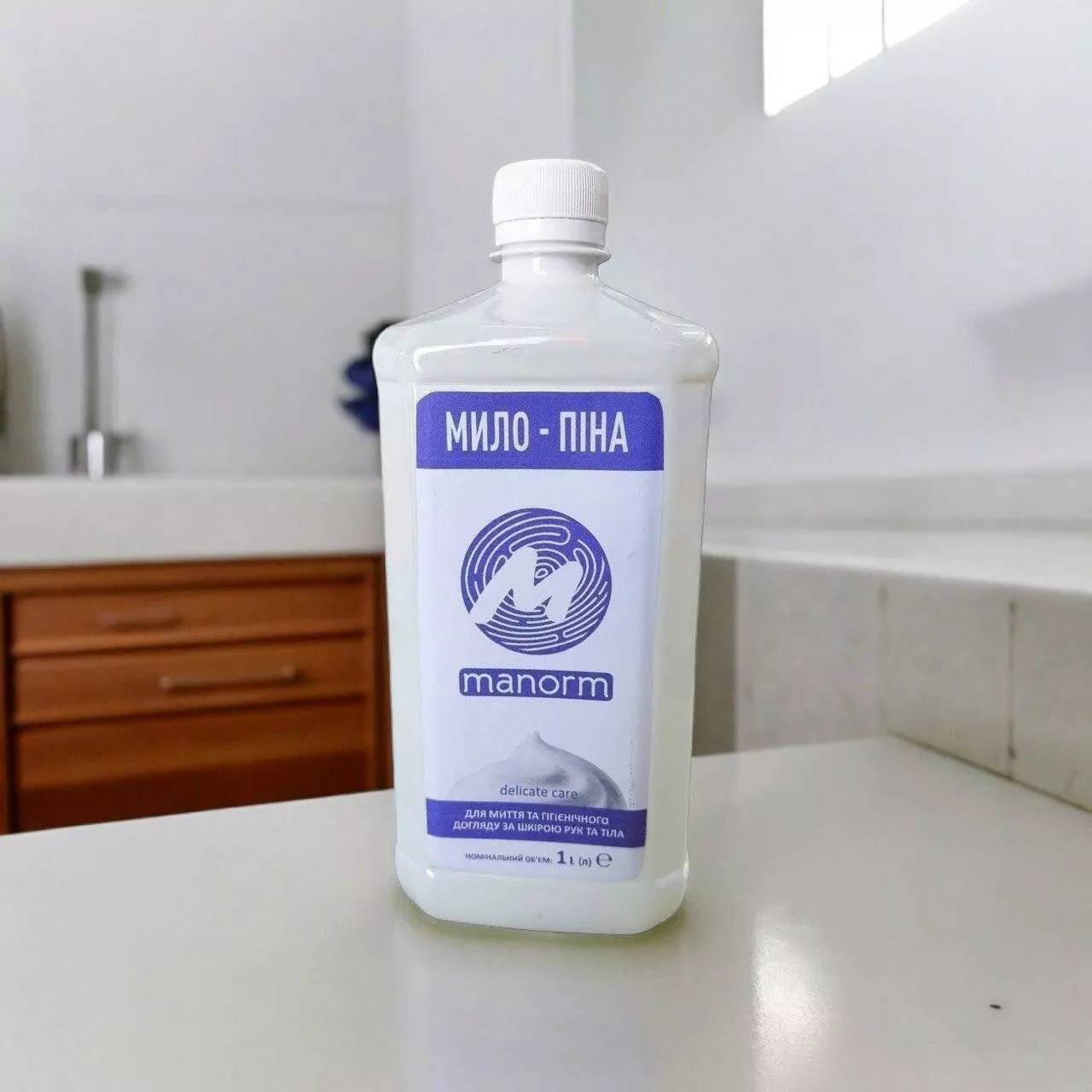 Мило-піна «Софт» ТМ "Манорм" — це готовий до використання м’який гігієнічний засіб для щоденного миття рук і тіла. Формула на основі делікатних поверхнево-активних речовин із додаванням гліцерину забезпечує ефективне очищення без пересушування, сприяючи збереженню природного ліпідного балансу шкіри. Засіб утворює ніжну піну, яка легко наноситься, добре змивається, не залишає подразнення та має приємний аромат. Підходить для щоденного використання, у тому числі для чутливої шкіри.