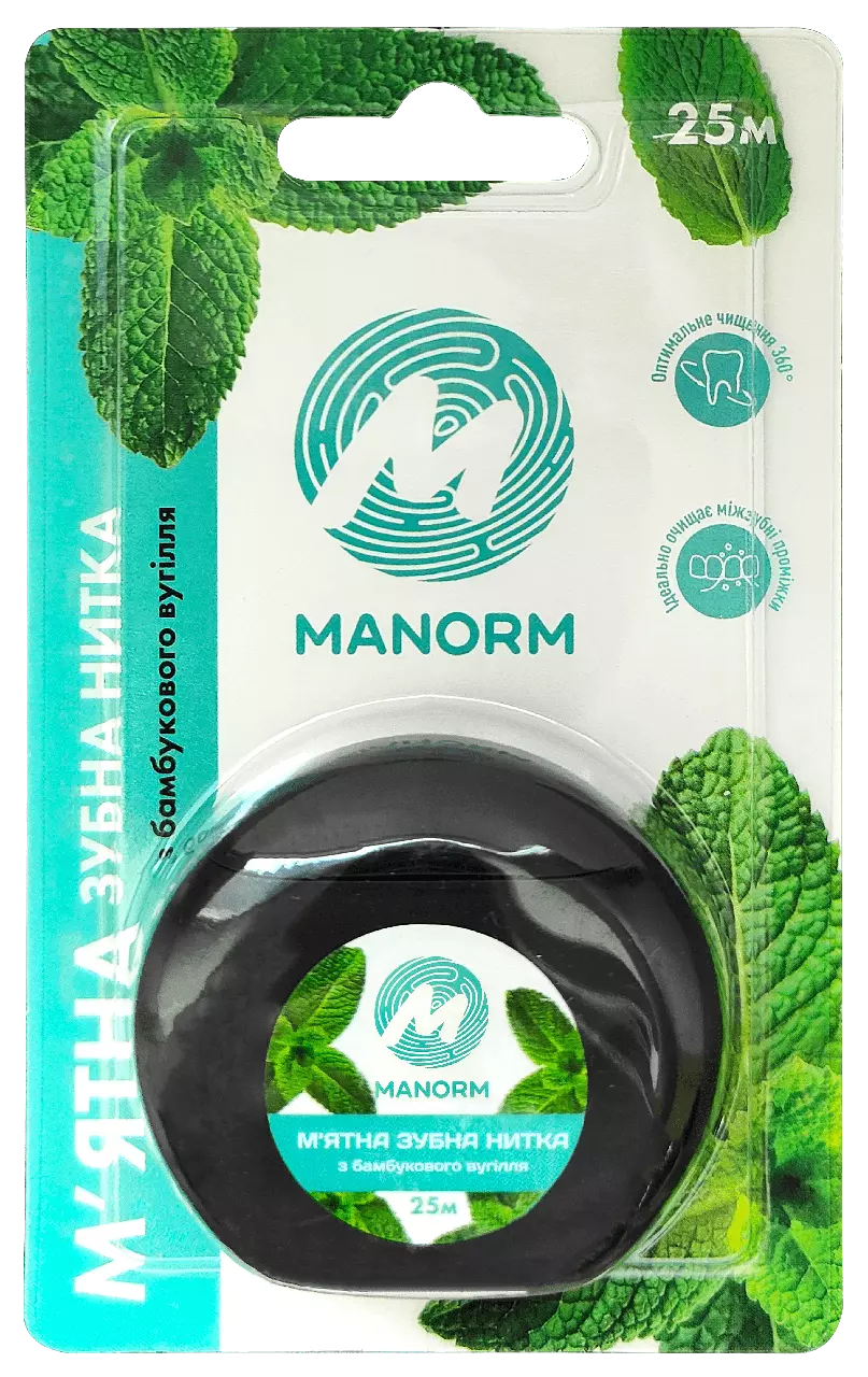 М’ятна зубна нитка з бамбуковим вугіллям Manorm — засіб для догляду за порожниною рота, призначений для очищення міжзубних проміжків. Завдяки наявності бамбукового вугілля та м’ятного еліксиру, нитка поєднує очищувальні та освіжаючі властивості. Виготовлена з міцного матеріалу, легко ковзає між зубами та забезпечує відчуття чистоти у важкодоступних ділянках ротової порожнини.