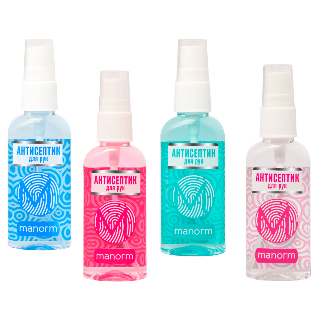 Набір антисептиків спреїв, дезінфікуючий засіб Coral, Crystal, Malachite, Aquamarine Manorm 50мл
