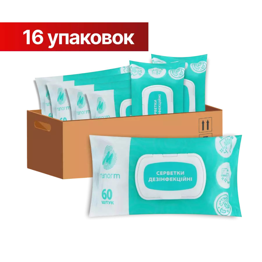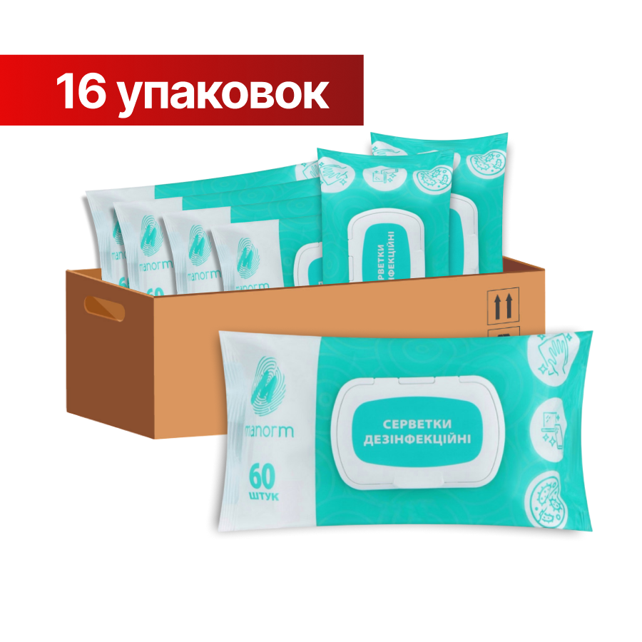 Набір вологих дезінфекційних серветок Manorm (16 упаковок по 60 шт)