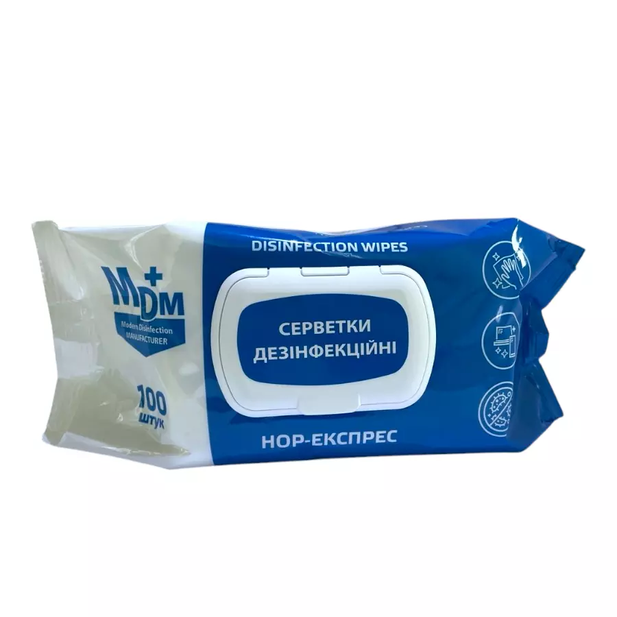 Серветки вологі дезінфекційні НОР-експрес MDM 100 шт (спиртові)