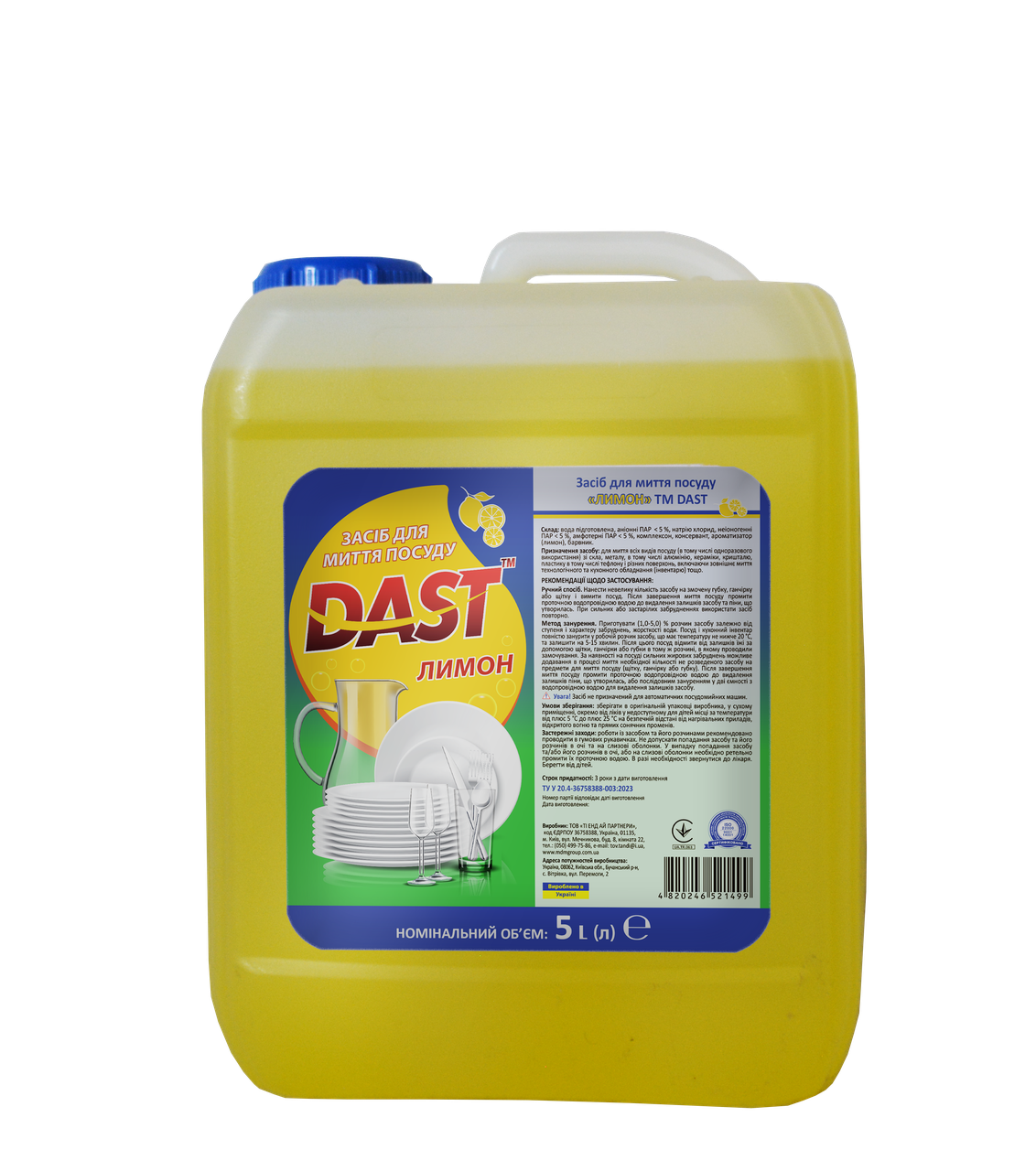 Зaciб для миття посуду DAST Лимон 5л каністра