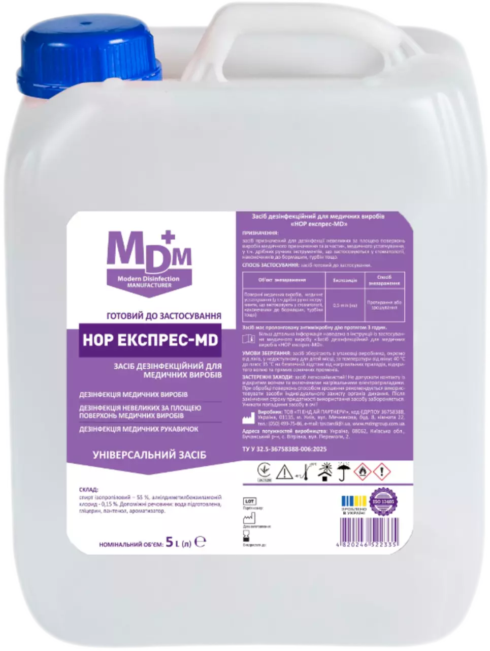 Засіб дезінфекційний для медичних виробів НОР експрес-MD 5л