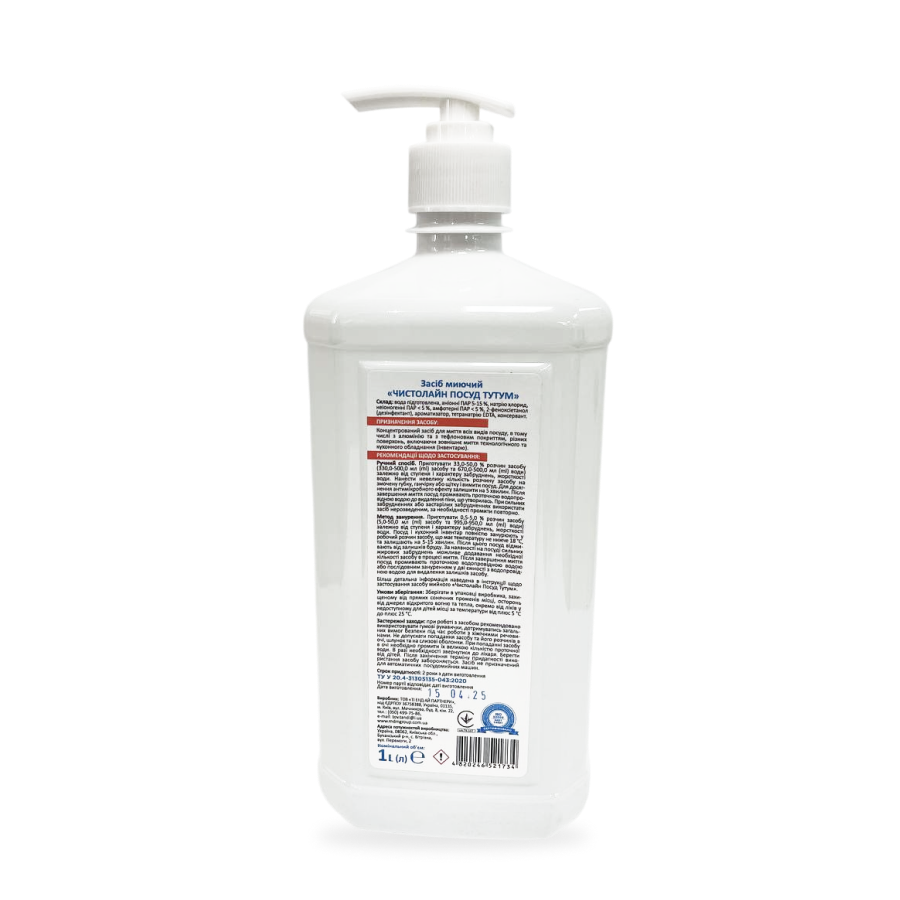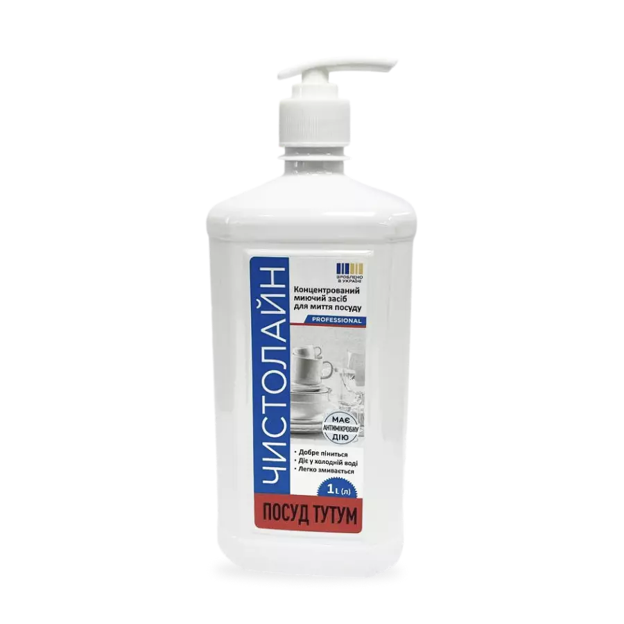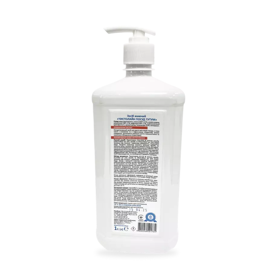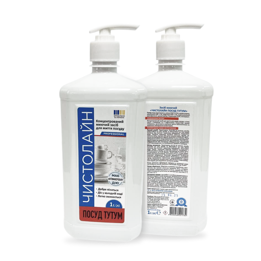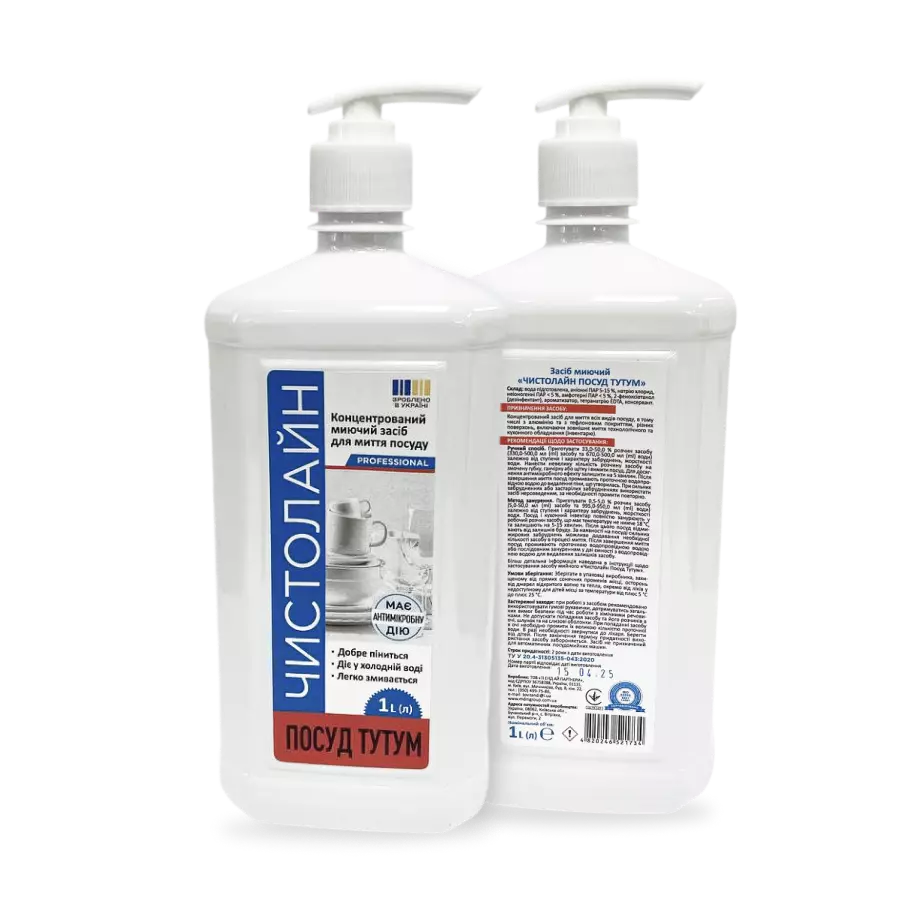 Концентрований мийний засіб «Чистолайн Посуд Тутум» призначений для гігієнічного та безпечного очищення посуду та кухонного інвентарю. Має антимікробну дію, легко усуває жирові й білкові забруднення, не залишає слідів та запаху. М’який до поверхонь – не ушкоджує кераміку, скло, тефлон, емаль та інші матеріали. Підходить для побутового та професійного використання.