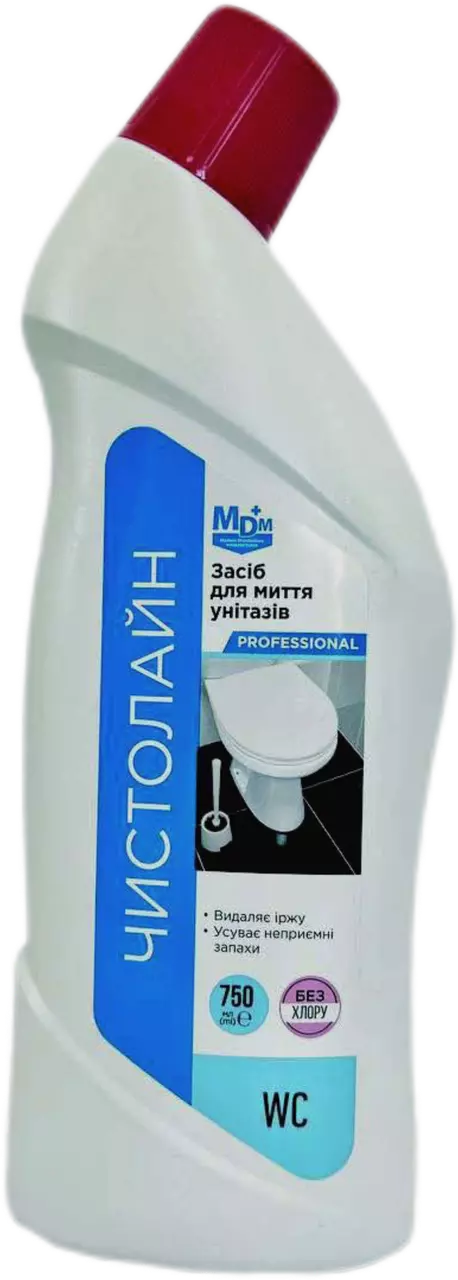 Миючий засіб «Чистолайн WC» — це ефективний засіб для очищення сантехнічних поверхонь від складних забруднень. Завдяки спеціально розробленій формулі він ефективно видаляє іржу, вапняний наліт, сечовий камінь та органічні забруднення. Засіб не пошкоджує поверхні з кераміки, скла, порцеляни, нержавіючої сталі та полімерів. Легко змивається, не залишаючи слідів і не фіксує забруднень.