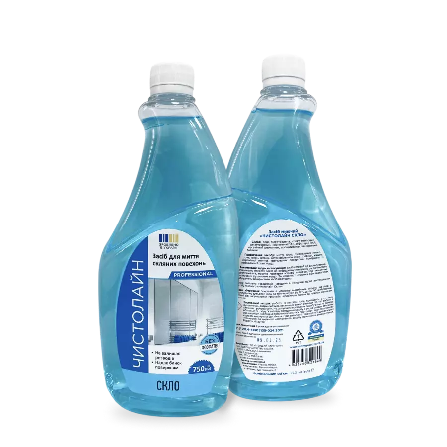 Мийний засіб «Чистолайн Скло» створений для швидкого та ефективного очищення прозорих і глянцевих поверхонь. Завдяки оптимально підібраному складу він легко видаляє пил, жирні плями та інші забруднення, не залишаючи розводів і слідів. Підходить як для щоденного прибирання, так і для професійного використання.