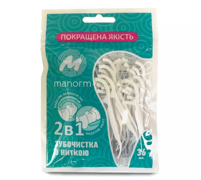 Зубочистка з освіжальною ниткою Manorm — засіб для щоденної гігієни ротової порожнини. Виріб поєднує функціональність зубочистки та нитки, забезпечуючи ефективне очищення міжзубних проміжків. Завдяки анатомічній формі, гнучкій конструкції та м’ятному еліксиру зубочистка легко ковзає, дарує відчуття свіжості та допомагає запобігти скупченню нальоту й залишків їжі в трудно доступних місцях.